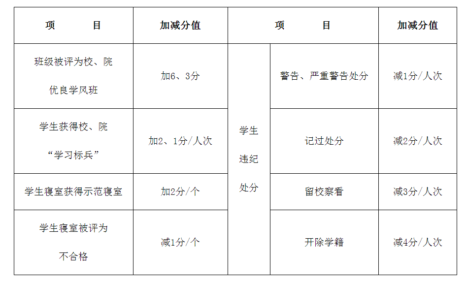(4)班主任工作考核与该班级及其学生的奖惩情况挂钩,有下列情况者给予相应的考核加减分: