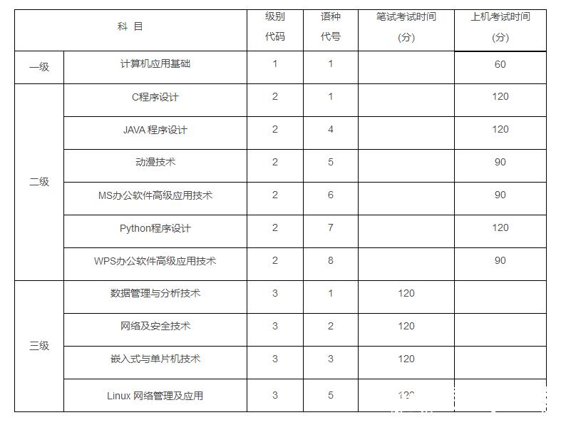 (六)三级,实行笔试,时间为120分钟。共有数据管理与分析技术、网络及安全技术、嵌入式与单片机技术、Linux网络管理及应用四个科目。